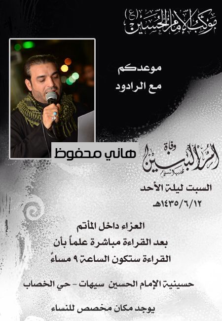 ذكرى وفاة السيدة أم البنين (ع) بمشاركة الرادود هاني محفوظ