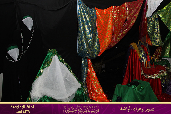 الفعالية التي هدفت لإيصال أسمى أنواع العشق الحسيني بافتداء الإنسان للإمام الحسين عليه السلام بروحه، فعمدت اللجنة للاستعانة باللون الأبيض في جميع أركان القسم للرمز للكفن.