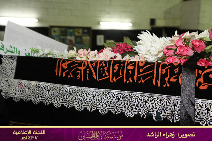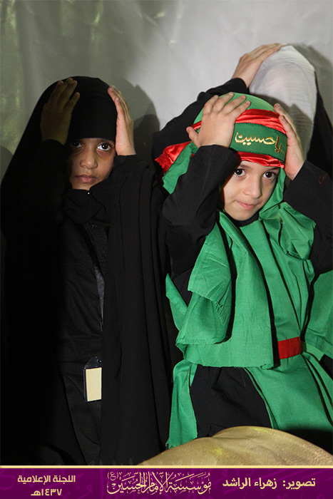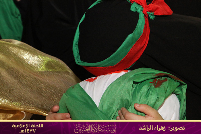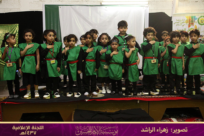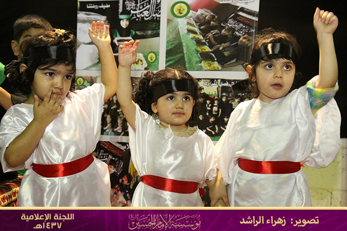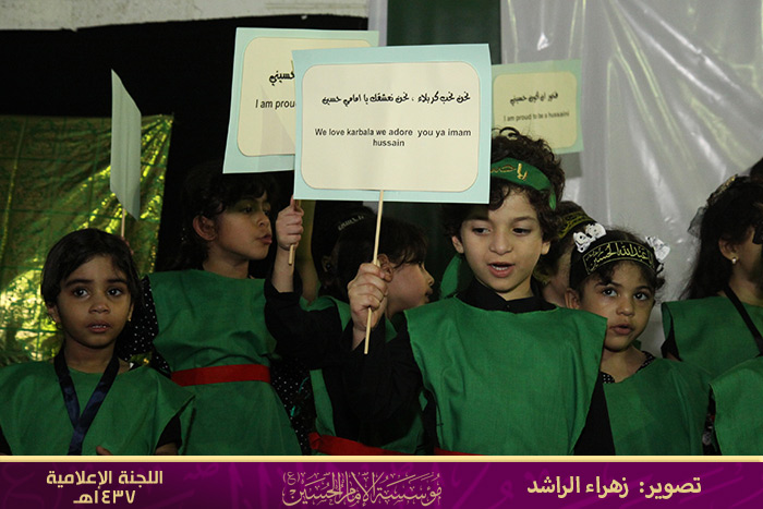 يشار إلى أن مركز الزهراء لحضانة الأطفال والتفوق العلمي يمثله كل من المدير العام الاستاذ عادل البوري ومديرة المركز الاستاذة زينب حمود وجميع طاقم المركز من إداريات وتربويات، إلى جانب حضور جميع اطفال الروضة للمشاركة بتمثيل واقعة الطف الاليمة بعنوان ( انا الطفل الحسني ) .