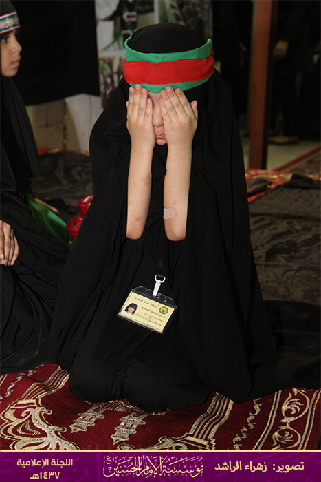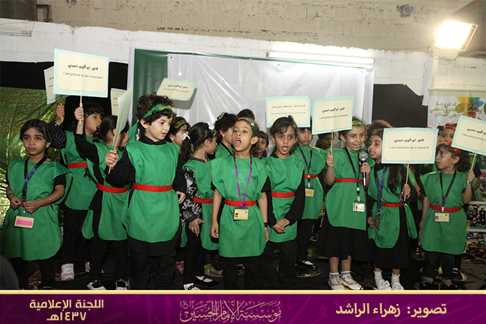 وكان مخيم الطفل قدم برنامجاً لرواده الصغار لتعريف الطفل بواقعة الطف، وانتصار الدم على السيف، إلى جانب زرع محبة آل البيت عليهم السلام منذ الصغر فالحسين أخلاق وسلوك.