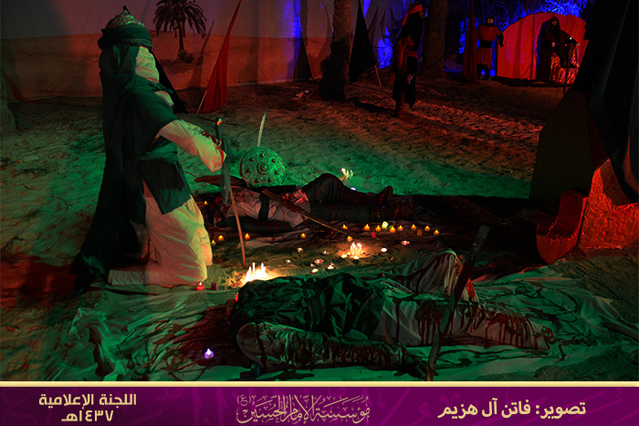 هذا ماحدث في المشرعة الركن الذي يختزل كل أحداث كربلاء عبر مجسمات تتكلم بلغة الألوان وتعابير الوجه وطريقة تركيب المجسم ستخبرك إلى أي فئة ينتمي.