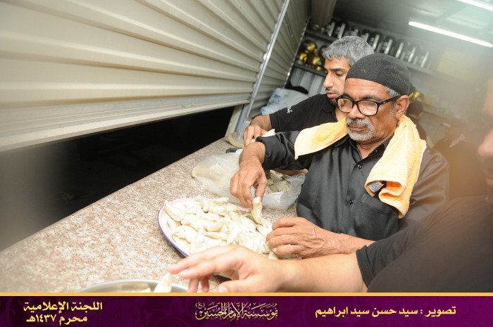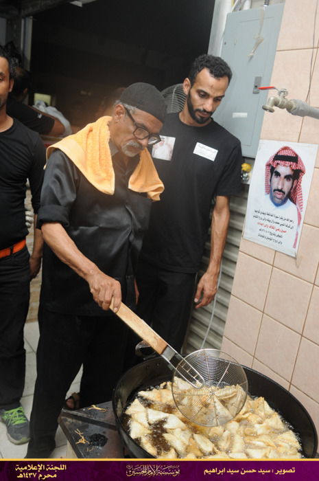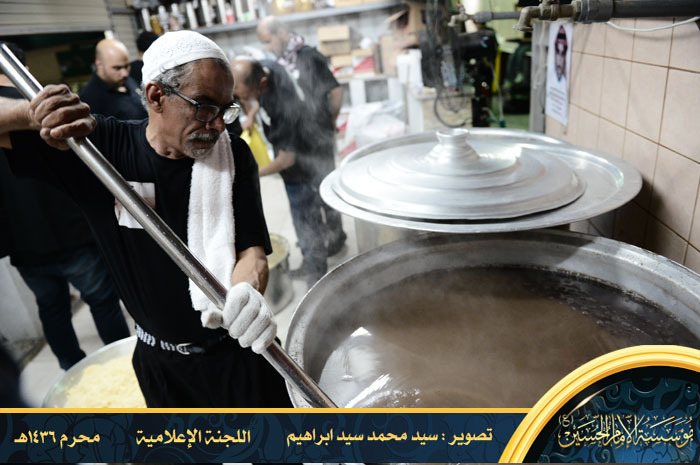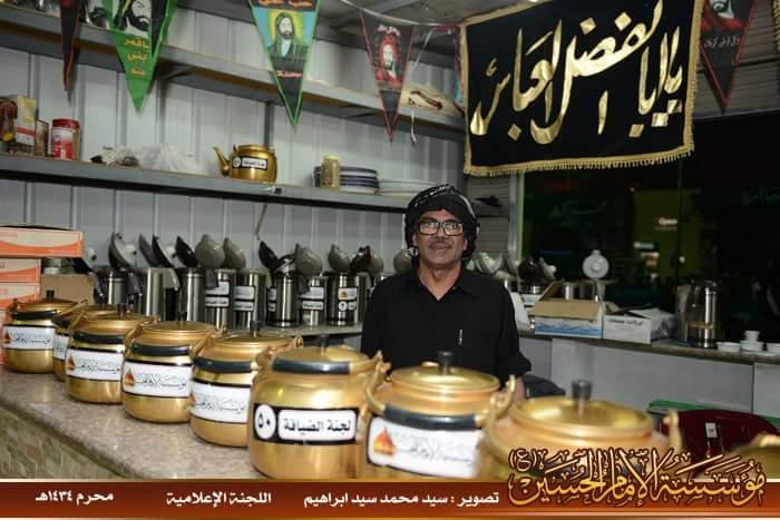 وبعد توقف الموكب، استمر بخدمة المعزين إلى أن التحق بمؤسسة الإمام الحسين ويكون مسؤول الضيافة أيضا ويضيف لها لاحقا بعض المأكولات الخفيفة ويتوسع في جلب الكادر لتصبح لجنة الضيافة من أكبر وأميز لجان المؤسسة . وحين ينتهي من إعداد الضيافة كان حريصا على المشاركة في مواكب العزاء واللطم.