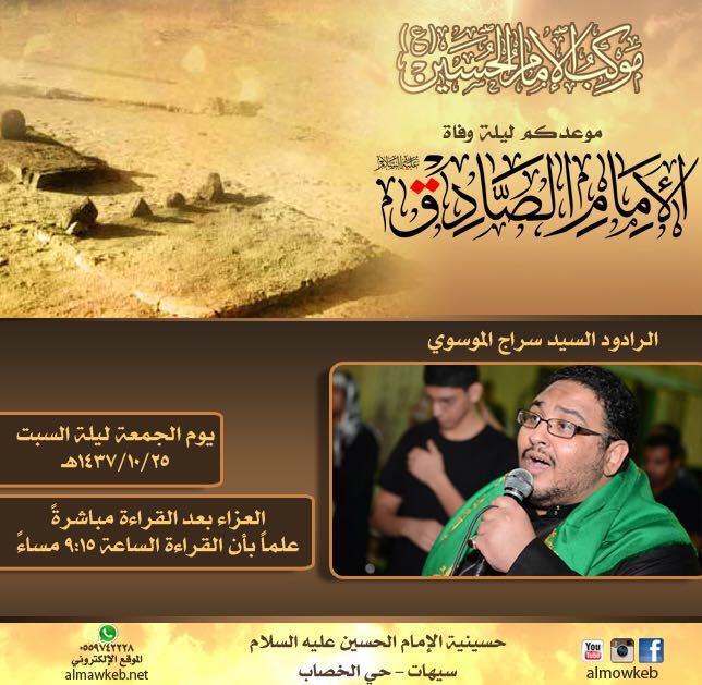 ذكرى استشهاد الإمام الصادق (ع) بمشاركة الرادود السيد سراج الموسوي