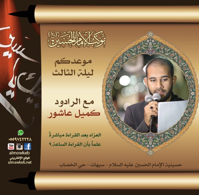 موعدكم ليلة الثالث مع الرادود الحسيني كميل عاشور