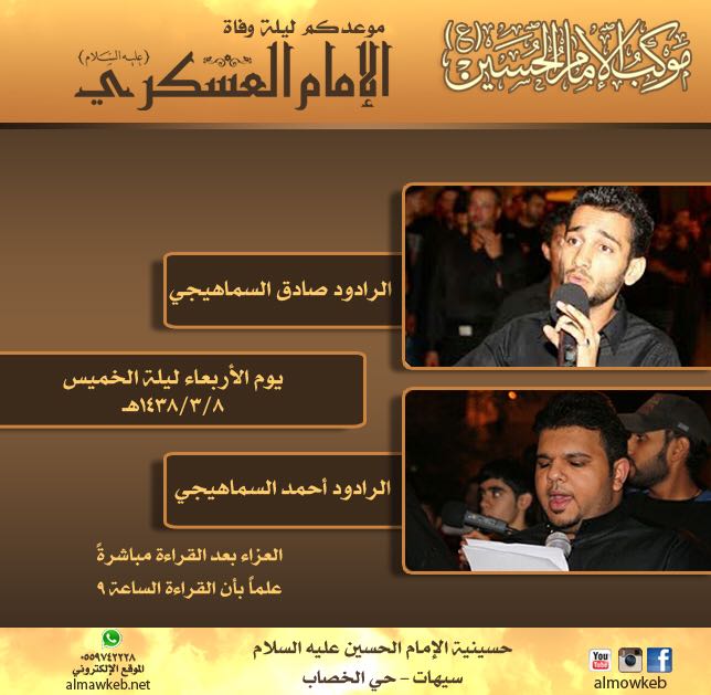 موعدكم مع الرادودين صادق وأحمد السماهيجي في وفاة الإمام العسكري (ع)
