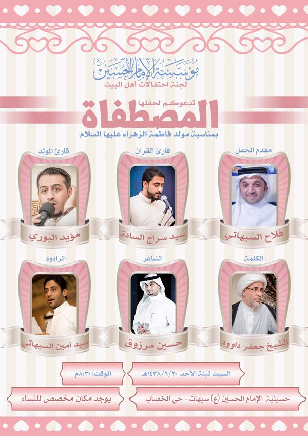موعدكم مع الحفل البهيج ( المصطفاة ) في ذكرى ميلاد السيدة الزهراء (ع)