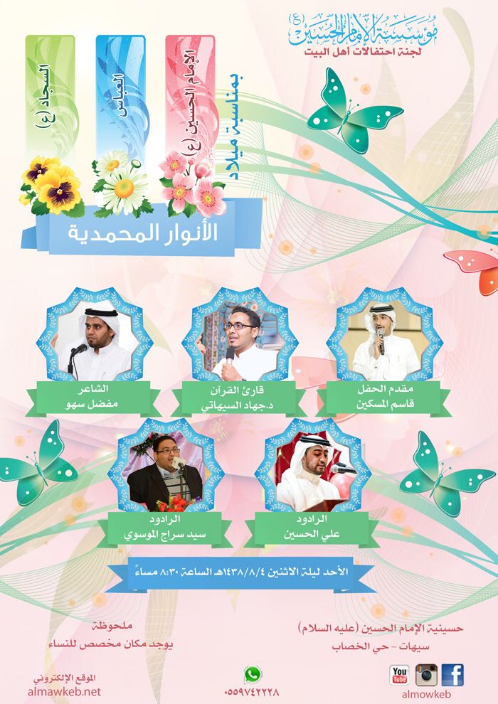 الأنوار المحمدية .. ذكرى ميلاد الإمام الحسين والعباس والإمام السجاد (ع)