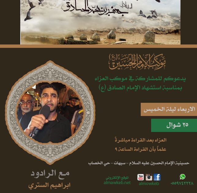 موعدكم في ذكرى استشهاد الإمام الصادق (ع) مع الرادود إبراهيم الستري