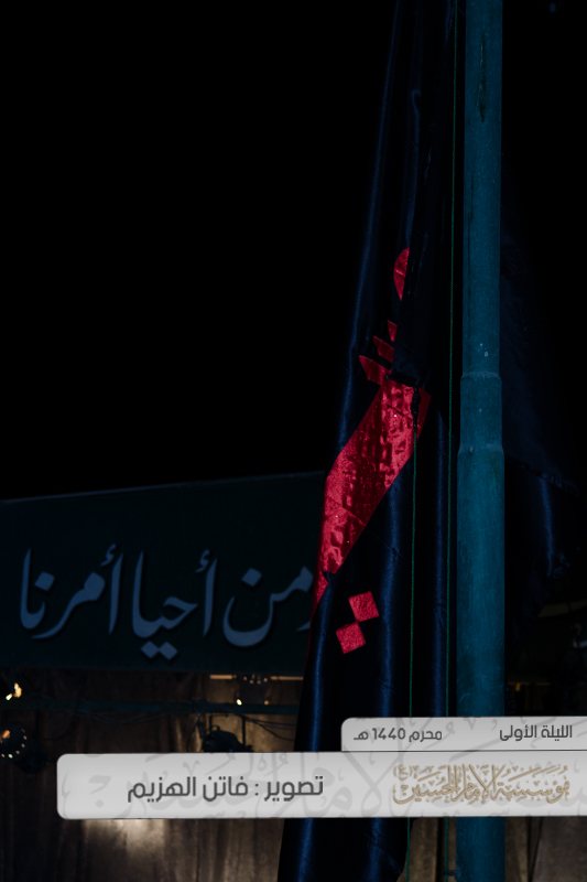 وبعدها رُفعت الراية مُصاحبة للقراءة الحُسينية وسط أجواء من الحزن، ودموع تنهمر حزنًا على مُصاب سيد الشهداء.