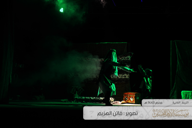 وتنقل العرض في مشاهده بين الحوادث التي جرت له سلام الله عليه، مبينًا المكائد التي كانت تُحاك ضده في السر والعلن .