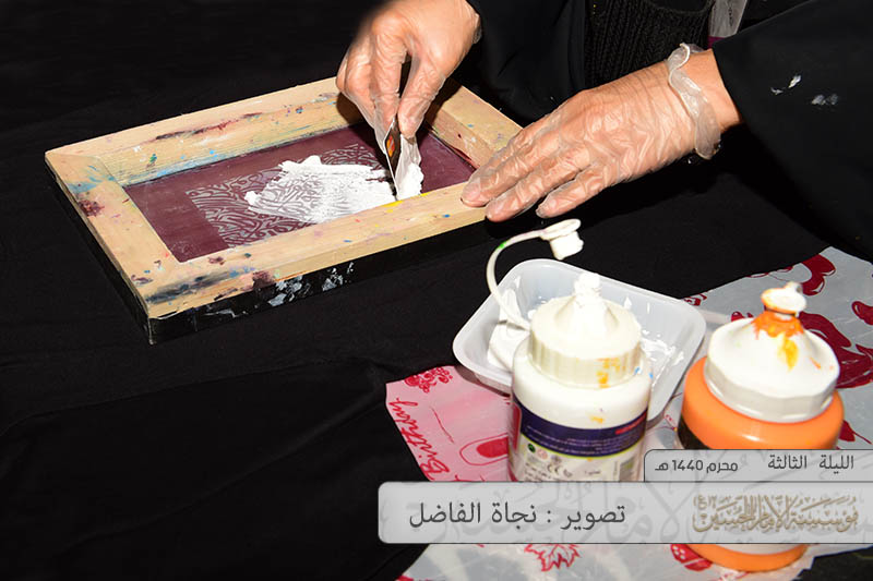 أقيمت ورشة الطباعة بالشاشة الحريرية في قسم المعارض الفنية لمؤسسة الإمام الحسين (ع)، مساء يوم أمس الخميس، قدمتها الفنانة التشكيلية "أزهار المدلوح".
