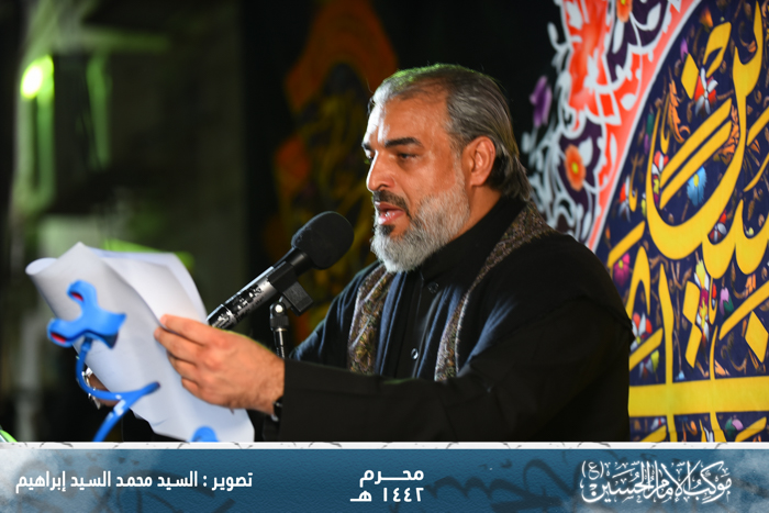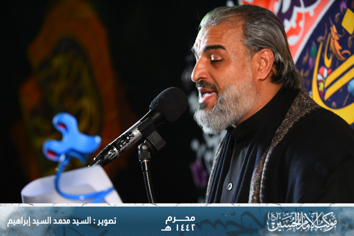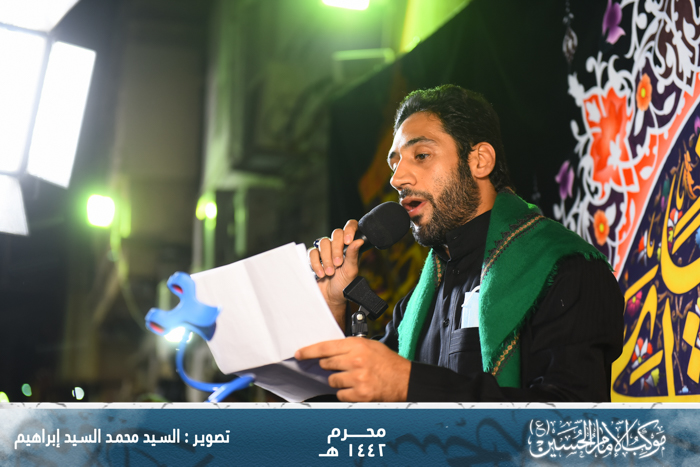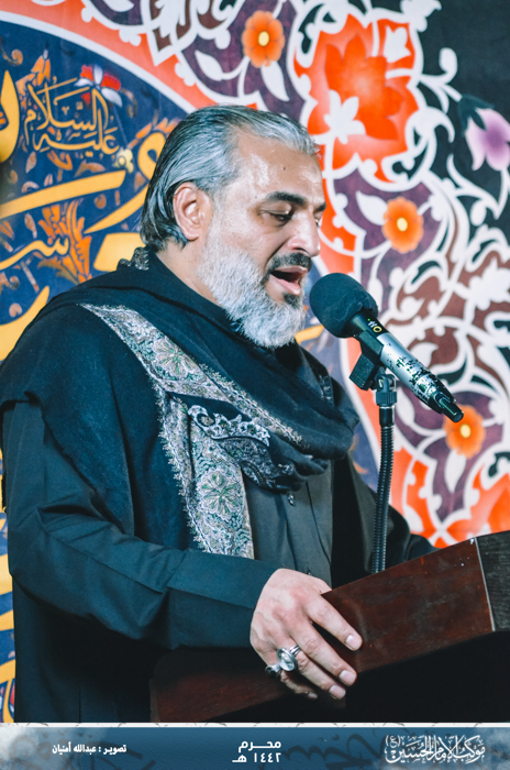 موكب العزاء كان بمشاركة وقيادة الرادود الحسيني المتميز هاني محفوظ بقصيدة من تأليف الشاعر الحسيني خادم الزهراء نادر التتان، بقصيدة حملت مستهل:
