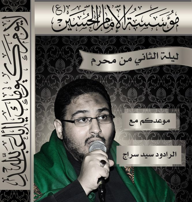 تدعوكم مؤسسة الإمام الحسين (ع) للمشاركة في عزاء الليلة الثانية من شهر محرم الحرام بمشاركة الرادود سيد سراج.