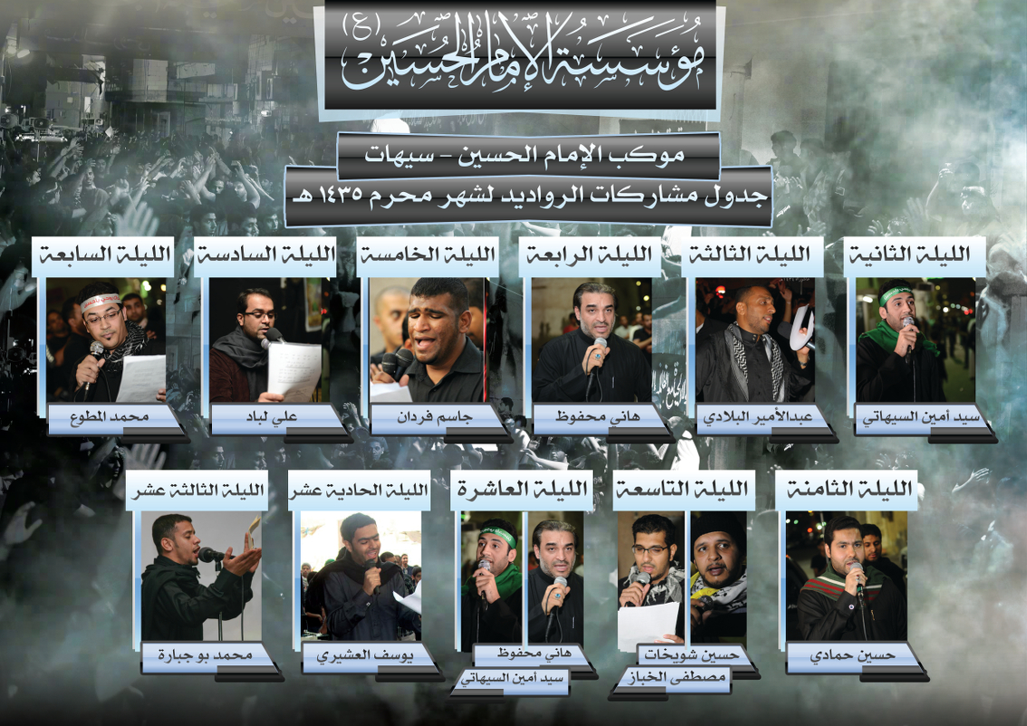 جدول مشاركات الرواديد لشهر محرم الحرام ١٤٣٥هـ