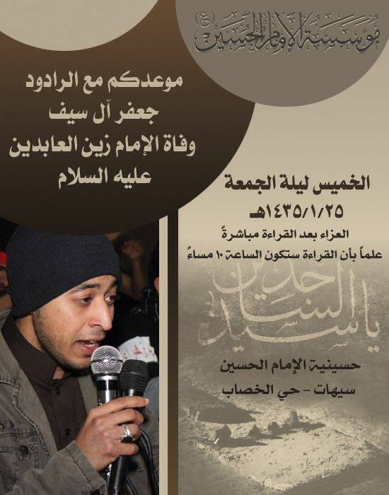 موعدكم ليلة الجمعة مع الرادود جعفر آل سيف في وفاة الإمام السجاد عليه السلام
