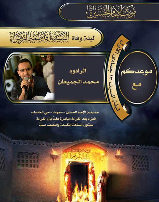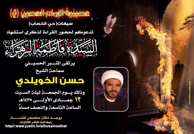 ذكرى استشهاد السيدة فاطمة الزهراء (ع) بمشاركة الشيخ حسن الخويلدي والرادود محمد الجميعان