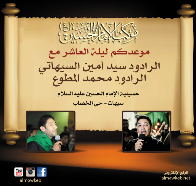 موعدكم ليلة العاشر مع الرادوديين السيد أمين ومحمد المطوع في موكب الإمام الحسين (ع) - سيهات حي الخصاب