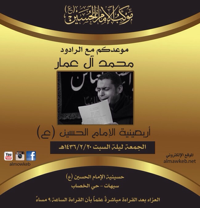 ذكرى أربعينية الإمام الحسين (ع) بمشاركة الرادود محمد آل عمار
