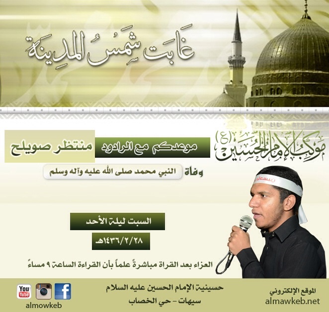 موعدكم مع الرادود منتظر صويلح في ذكرى وفاة الرسول الأعظم (ص)
