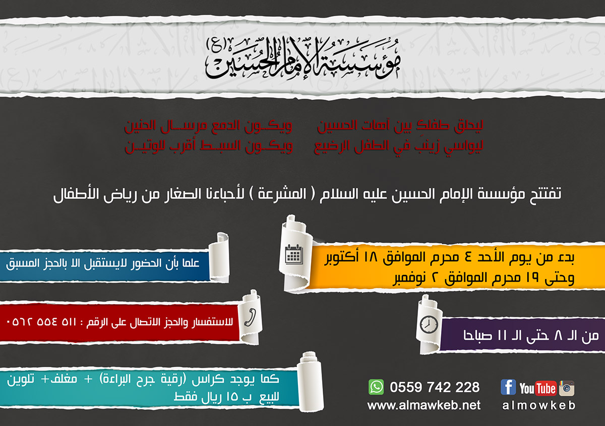 تفتتح مؤسسة الإمام الحسين عليه السلام ( المشرعة ) لأحباءنا الصغار من رياض الأطفال