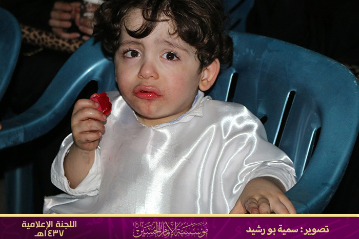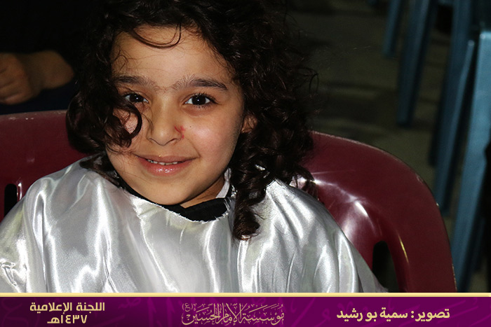 وفعّلت اللجنة في الليلة الأولى ركن الرسم للأطفال، ليوضحوا مشاعرهم و أفكارهم حول معركة كربلاء وآل الحسين عليهم السلام من خلال الفن.