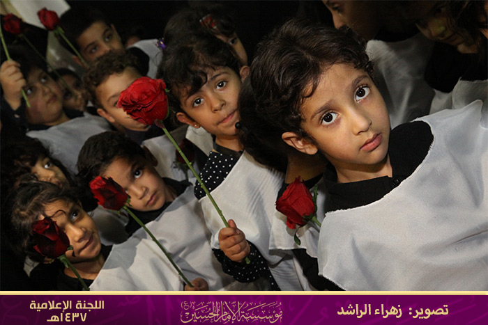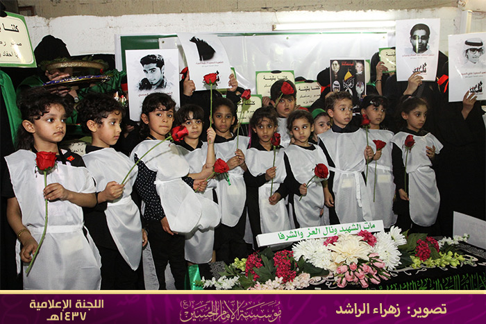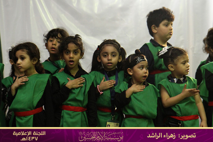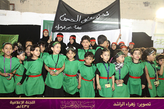 يشار إلى أن مركز الزهراء لحضانة الأطفال والتفوق العلمي يمثله كل من المدير العام الاستاذ عادل البوري ومديرة المركز الاستاذة زينب حمود وجميع طاقم المركز من إداريات وتربويات، إلى جانب حضور جميع اطفال الروضة للمشاركة بتمثيل واقعة الطف الاليمة بعنوان ( انا الطفل الحسني ) .