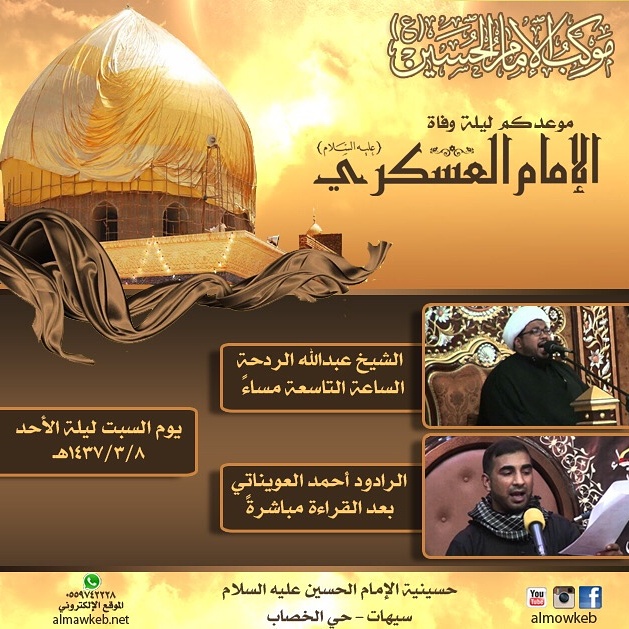 ذكرى استشهاد الإمام الحسن العسكري (ع) بمشاركة الشيخ عبدالله الردحة والرادود أحمد العويناتي