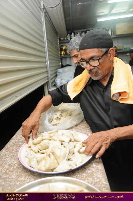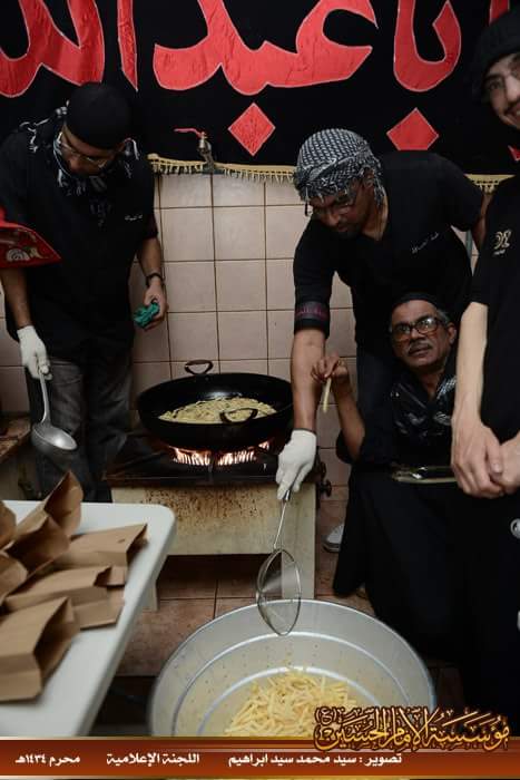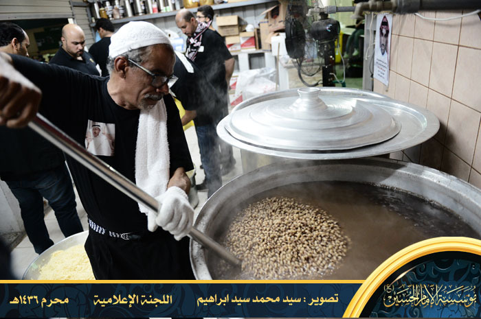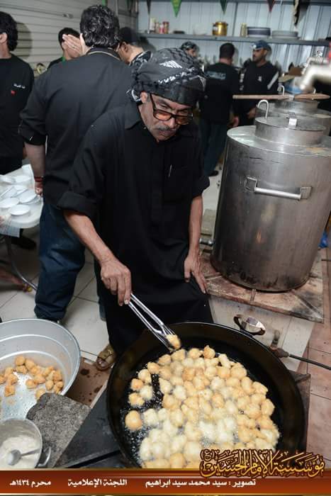 وبعد توقف الموكب، استمر بخدمة المعزين إلى أن التحق بمؤسسة الإمام الحسين ويكون مسؤول الضيافة أيضا ويضيف لها لاحقا بعض المأكولات الخفيفة ويتوسع في جلب الكادر لتصبح لجنة الضيافة من أكبر وأميز لجان المؤسسة . وحين ينتهي من إعداد الضيافة كان حريصا على المشاركة في مواكب العزاء واللطم.