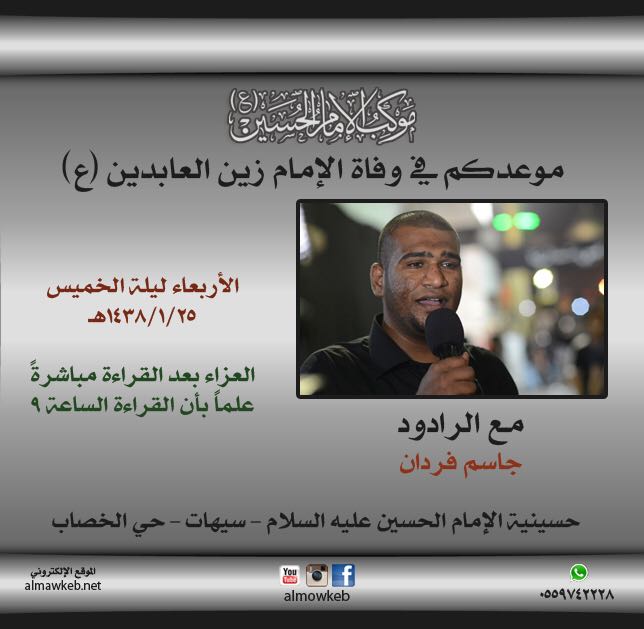 موعدكم مع الرادود جاسم فردان في ذكرى استشهاد الإمام زين العابدين (ع)