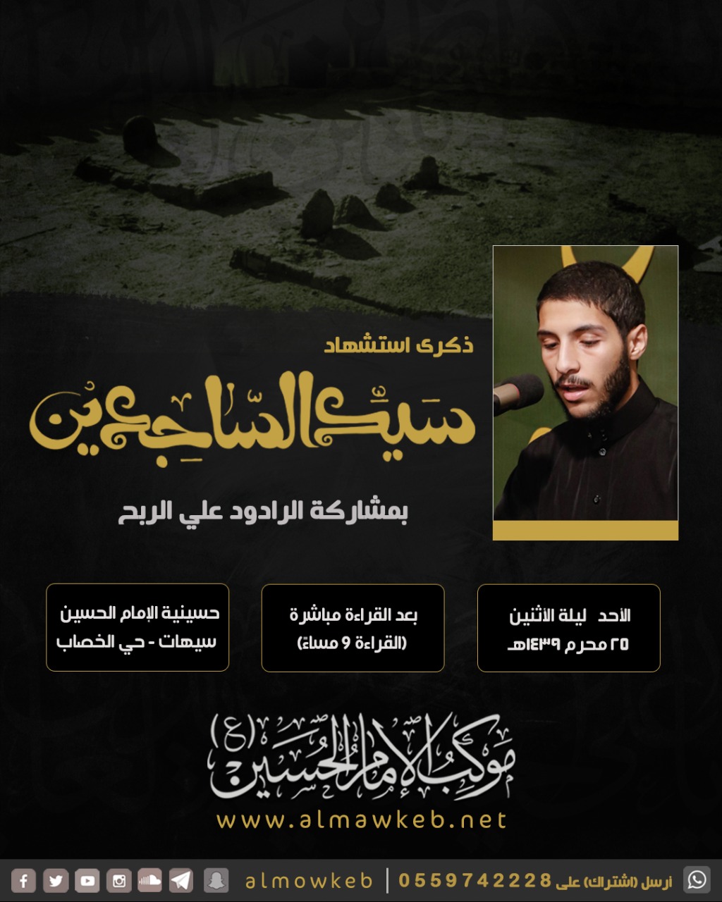 موعدكم مع الرادود علي الربح في ذكرى استشهاد الإمام السجاد (ع)