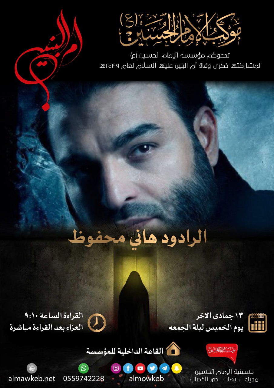 موعدكم في ذكرى وفاة السيدة أم البنين (ع) مع الرادود هاني محفوظ