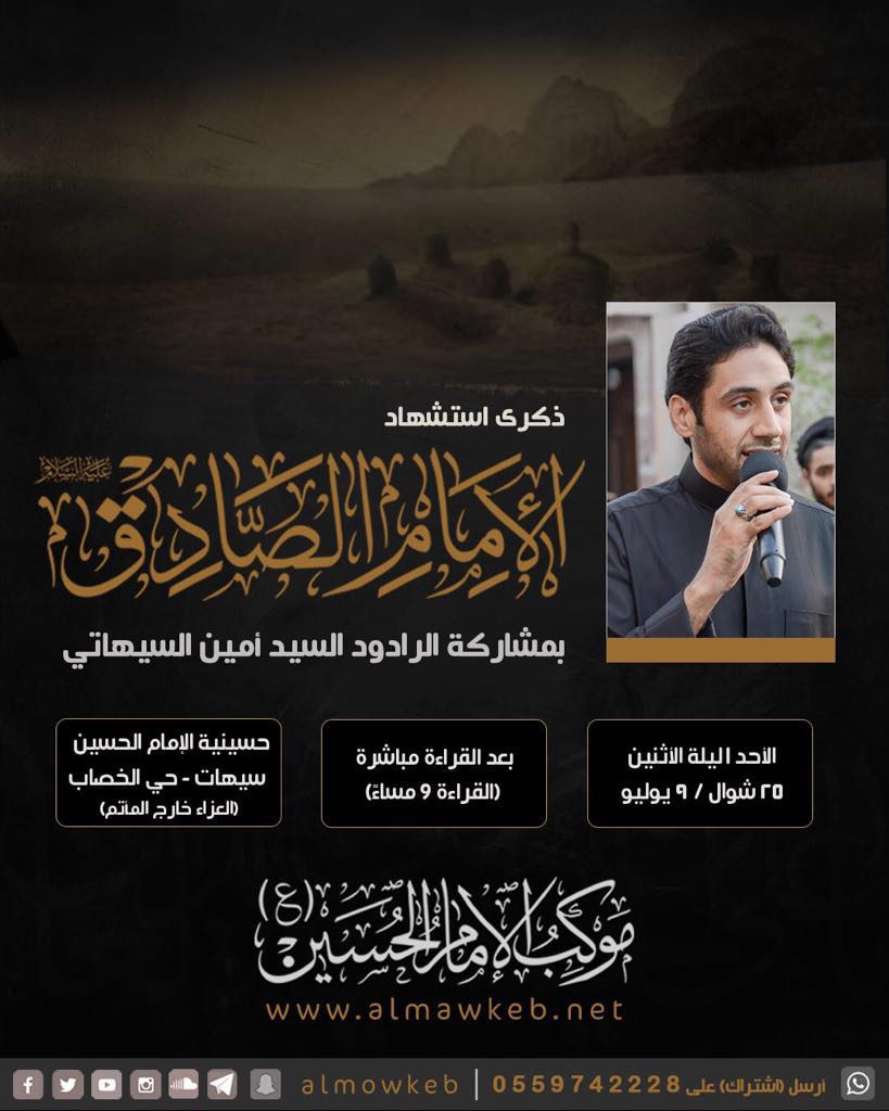ذكرى استشهاد الإمام الصادق (ع) بمشاركة الرادود السيد أمين السيهاتي
