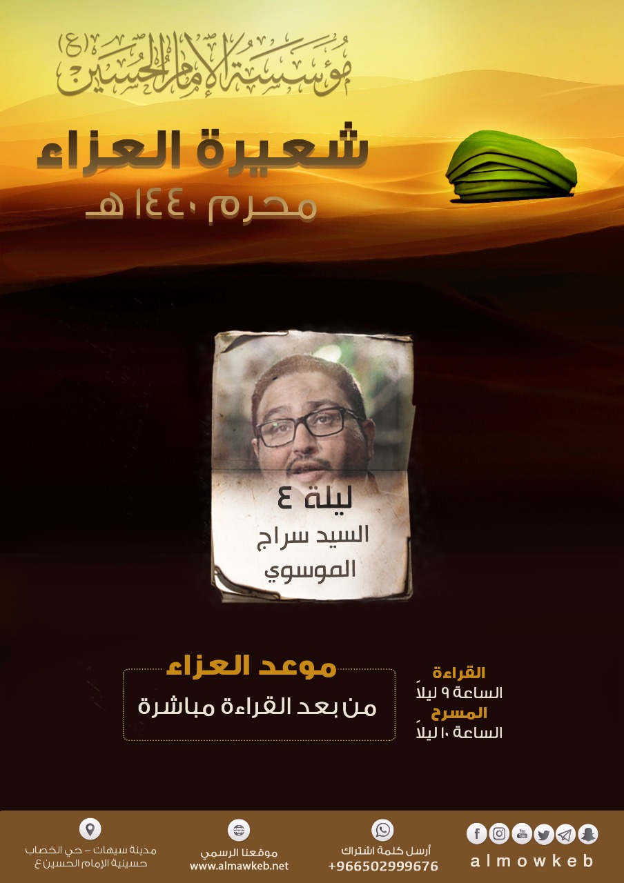 موعدكم ليلة الرابع مع الرادود السيد سراج الموسوي