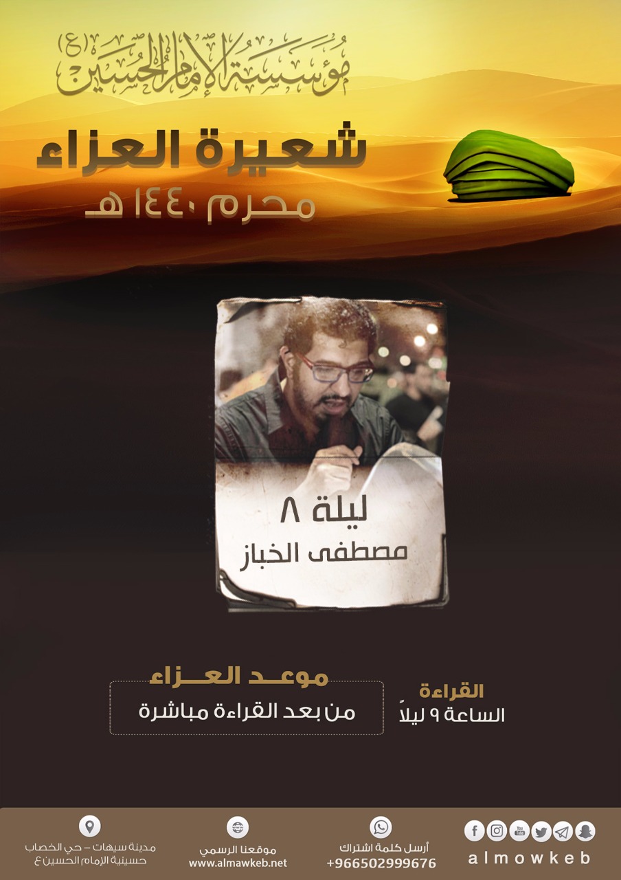 موعدكم ليلة الثامن مع الرادود مصطفى الخباز