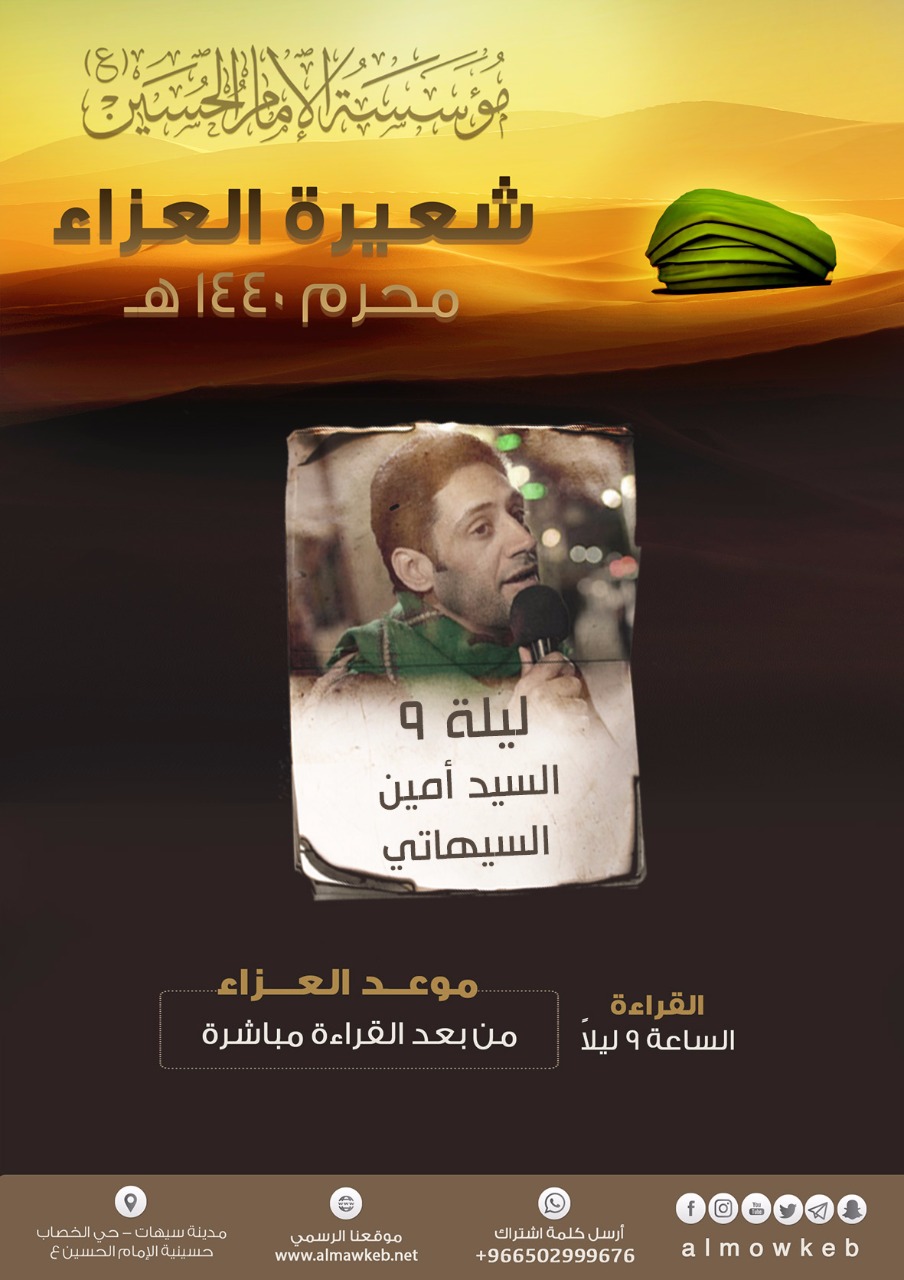 موعدكم ليلة التاسع مع الرادود السيد أمين السيهاتي