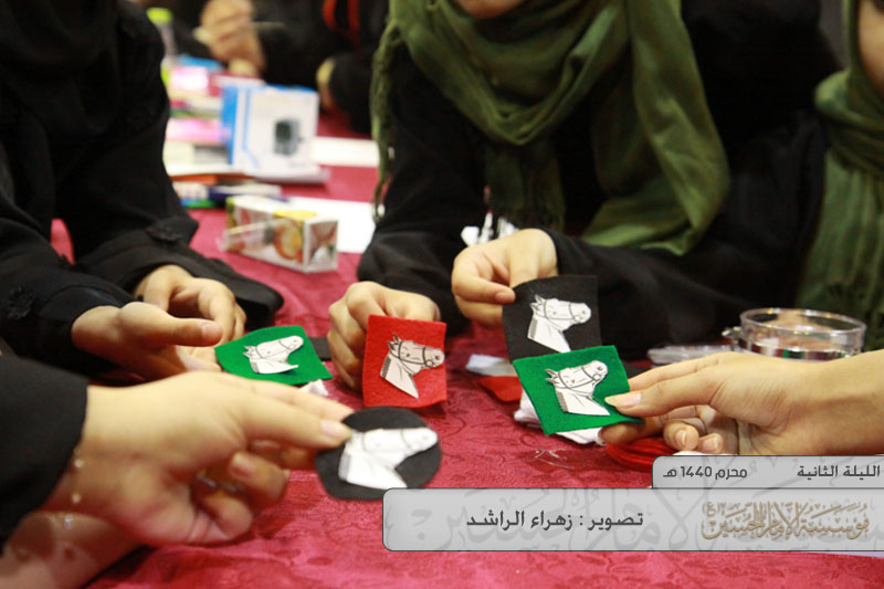 من جانب آخر شهد ركن الرسم والتلوين والاشغال اليدوية إقبالا أيضًا، حيث شارك الأطفال في صنع "بروشات" خاصة بهم وهي عبارة عن قطعة من الجوخ، يُثبت بها الطفل حصان بمُساعدة الكادر، ومن ثم يتم تثبيت الدبوس.