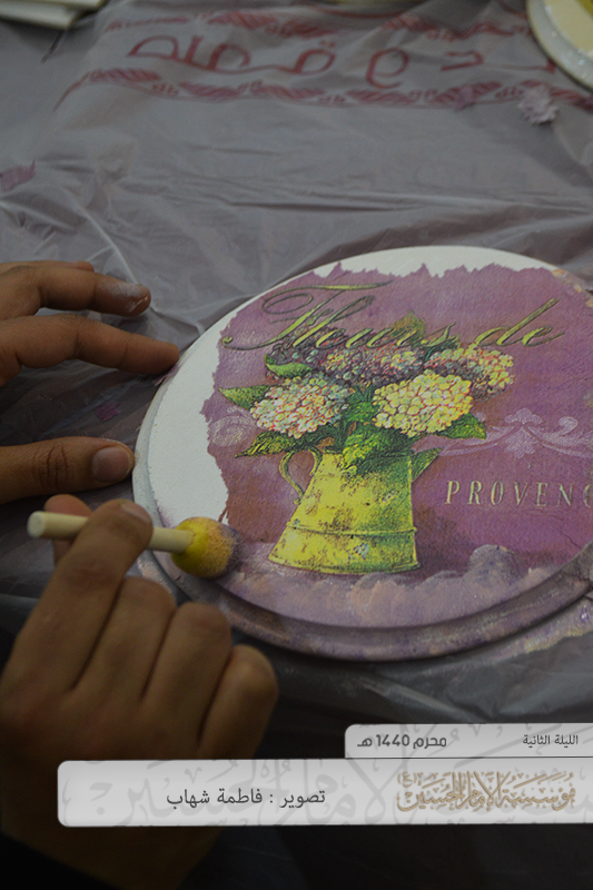 أقيمت مساء يوم الأربعاء الموافق السادس عشر من محرم ١٤٤٠هـ ، ورشة "الديكوباج" ضمن قسم المعرض الفني التابع لمؤسسة الإمام الحسين عليه السلام بسيهات و كانت الورشة من تقديم الفنانة "دلال إبراهيم الجارودي ".