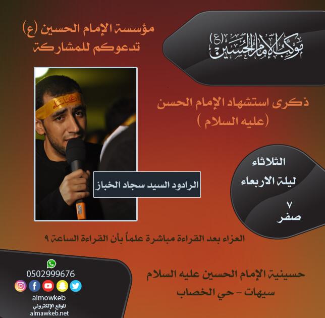 موعدكم في ذكرى استشهاد الإمام الحسن المجتبى (ع) مع الرادود سجاد الخباز