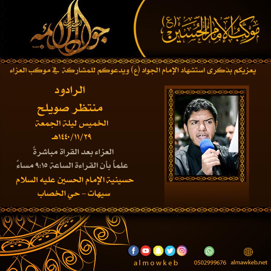 موعدكم في ذكرى استشهاد الإمام الجواد (ع) مع الرادود منتظر صويلح