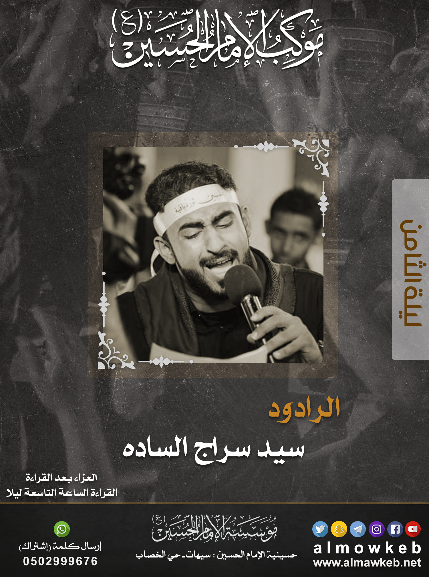 موعدكم الليلة الثامنة مع الرادود سيد سراج السادة