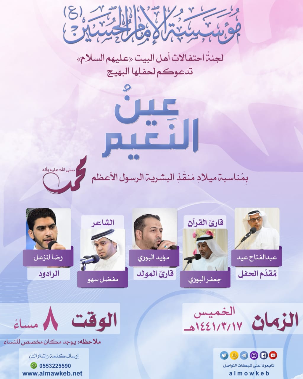 موعدكم في ذكرى ميلاد الرسول الأعظم (ص) مع الحفل البهيج (عين النعيم)