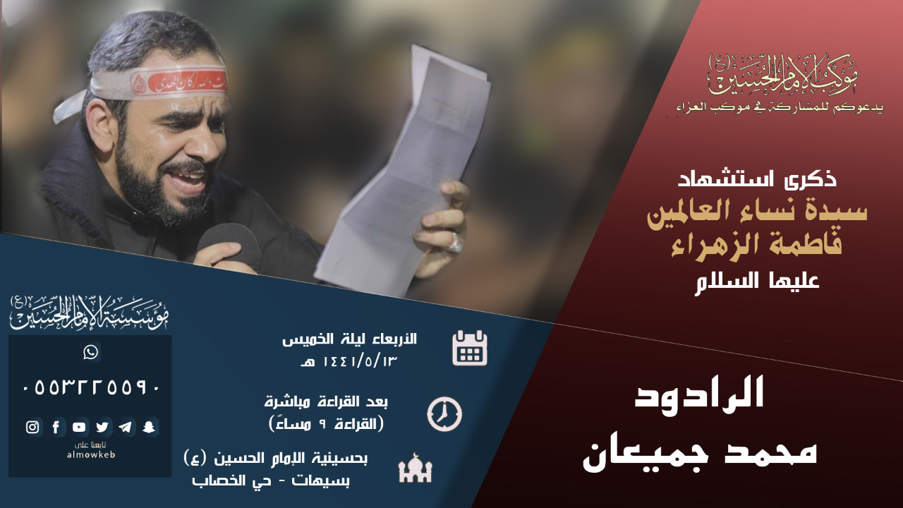 موعدكم في ذكرى استشهاد السيدة الزهراء (ع) مع الرادود محمد جميعان