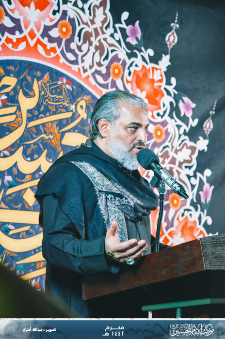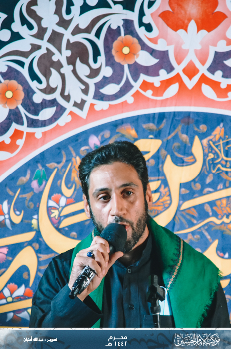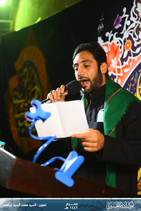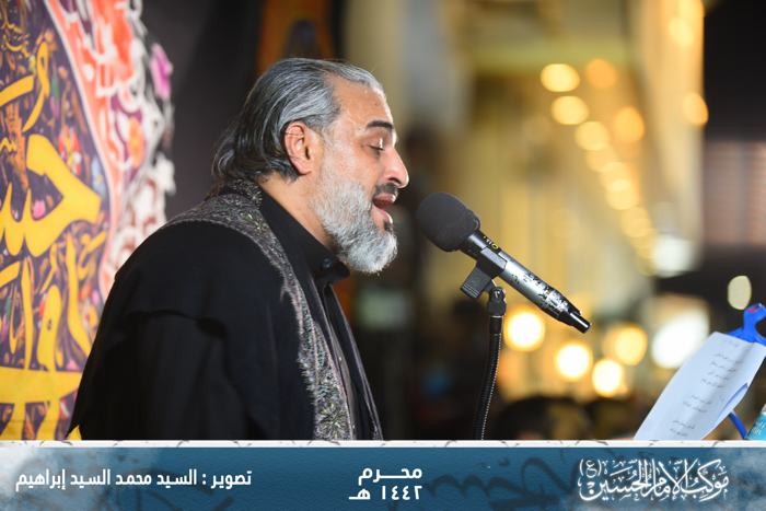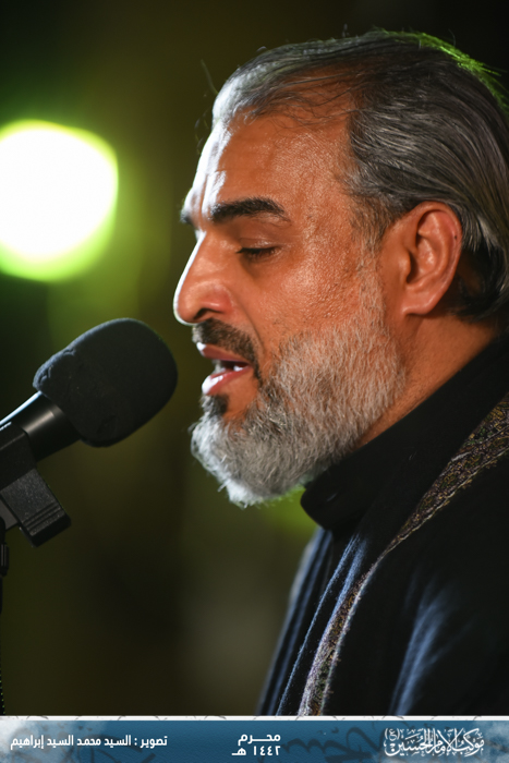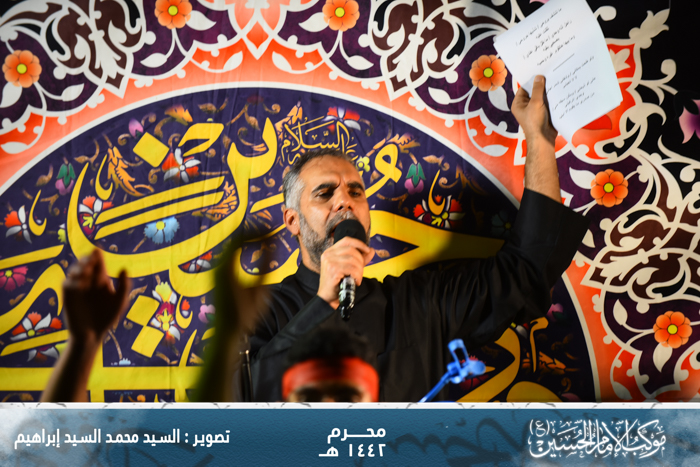 موكب العزاء كان بمشاركة وقيادة الرادود الحسيني المتميز هاني محفوظ بقصيدة من تأليف الشاعر الحسيني خادم الزهراء نادر التتان، بقصيدة حملت مستهل: