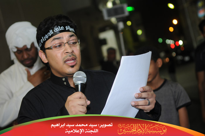 فيما أستكمل الرادود الحسيني محمد المطوع المسيرة بكلمات ألهبت مشاعر الحضور كان مستهلها :